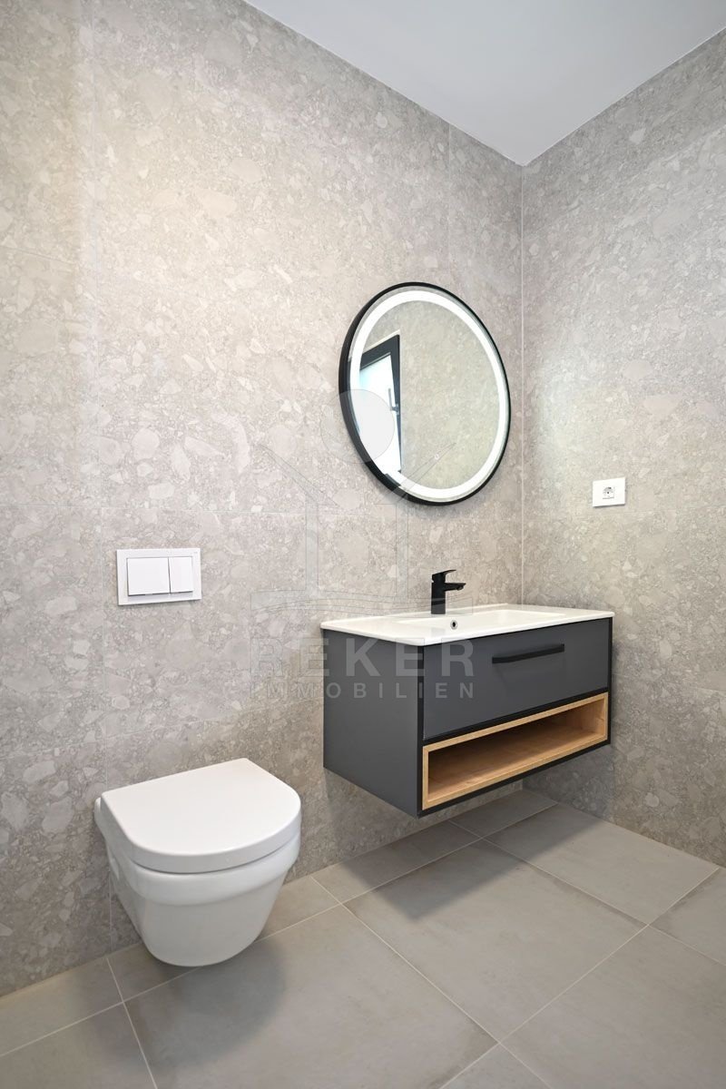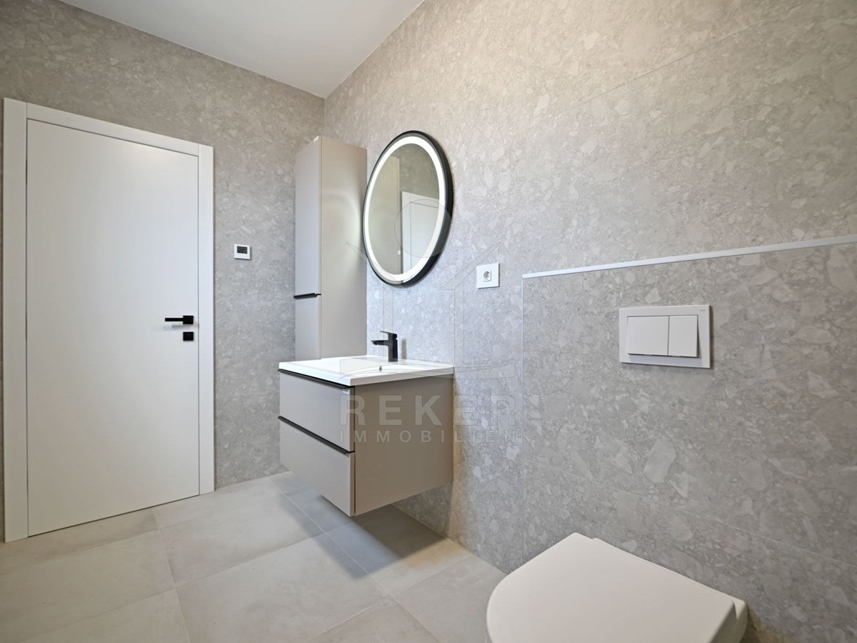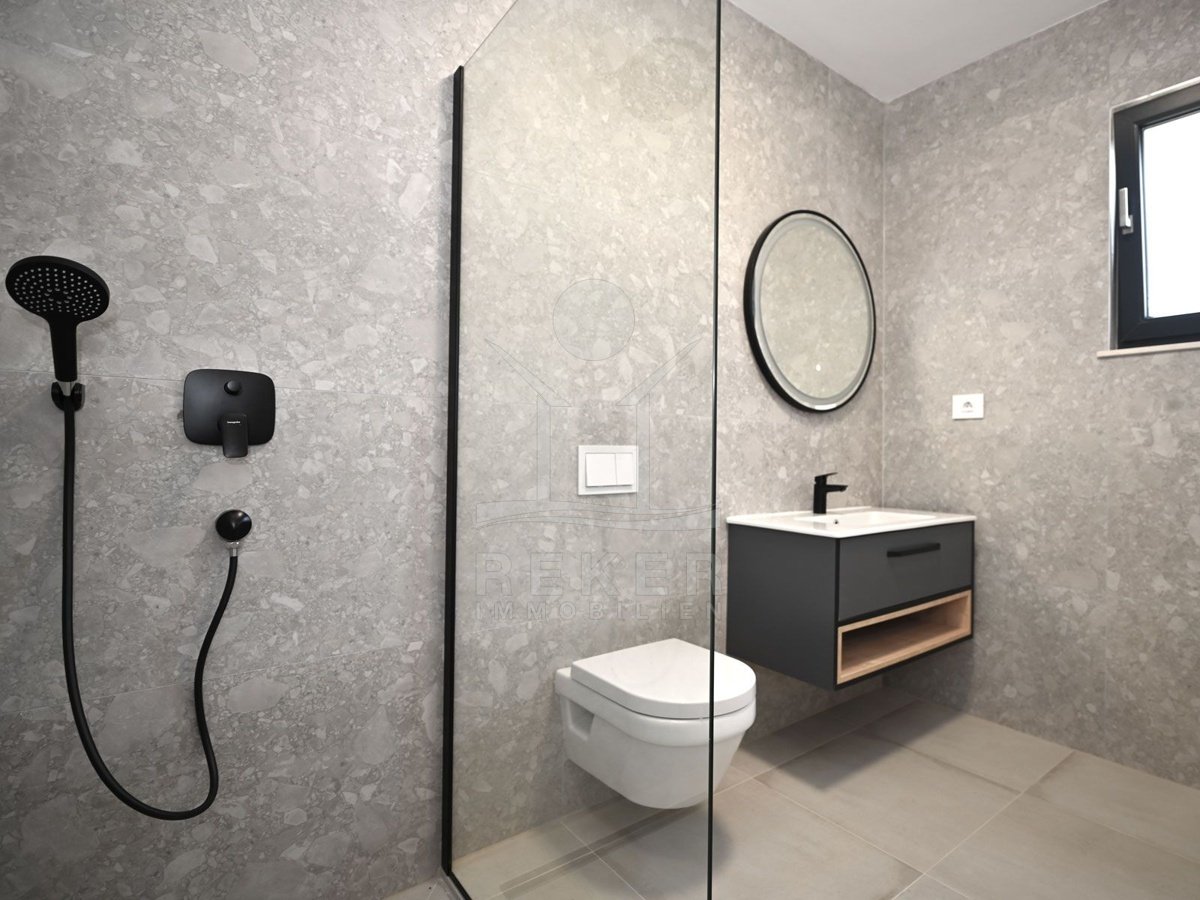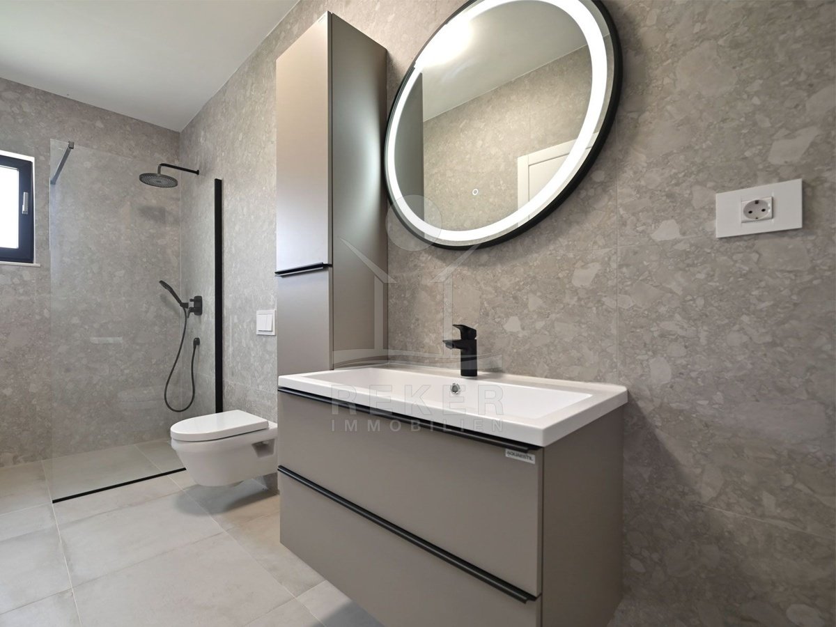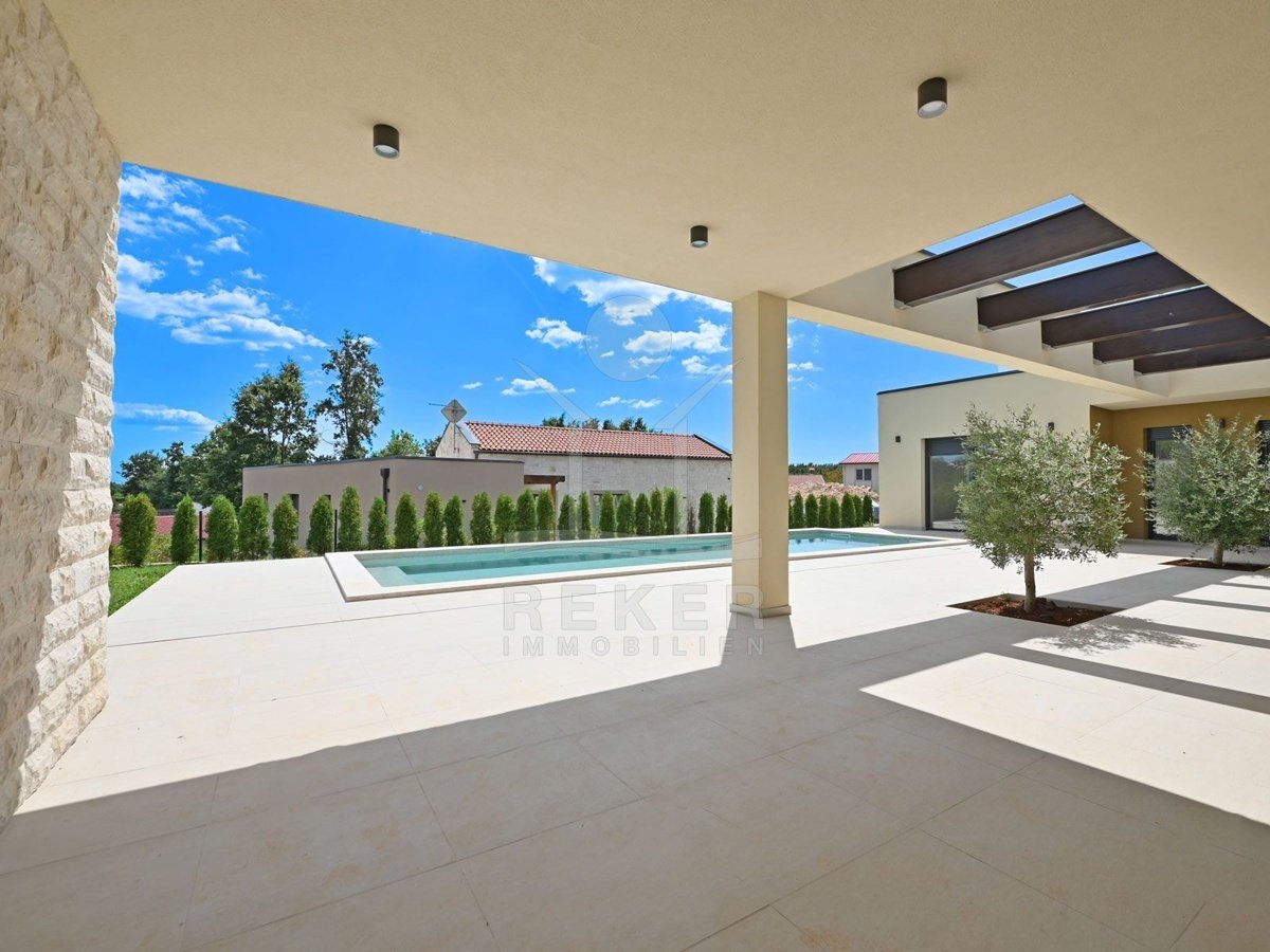 Zentralistrien zeigt hier seine ruhige Seite. Genau dort entsteht eine moderne Villa, die Ihnen Privatsphäre und kurze Wege zu wichtigen Angeboten bietet. Restaurants, Geschäfte, Cafés und eine Apotheke erreichen Sie nach etwa 1.000 Metern. Die Küste