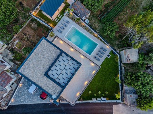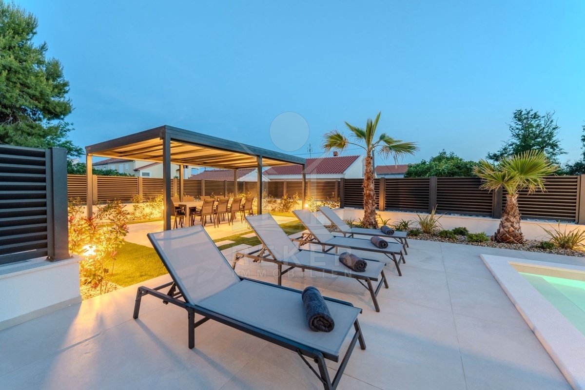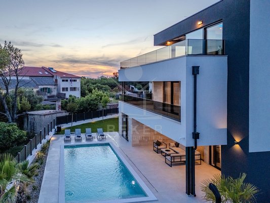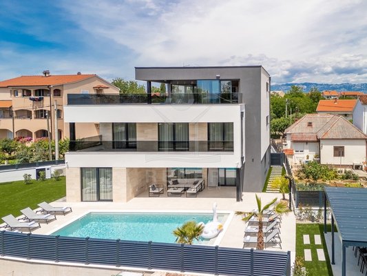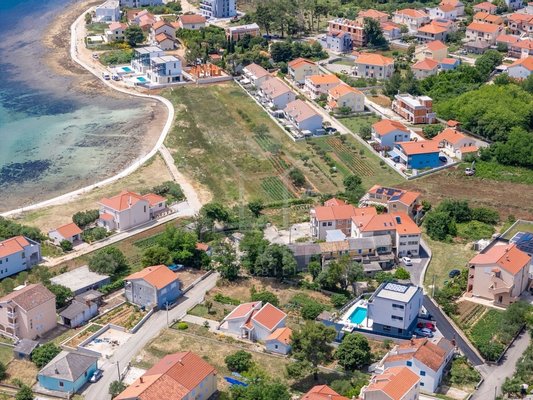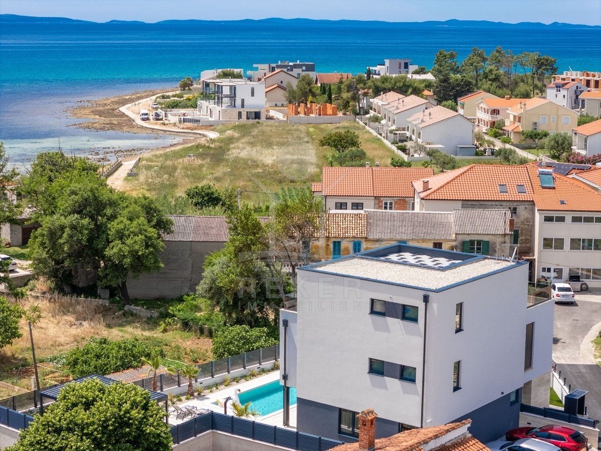 Privlaka zeigt seine ruhige Seite. In diesem Küstenort nahe Zadar wartet eine moderne Luxusvilla auf Sie, nur wenige Schritte vom Sandstrand entfernt. Mit rund 200 Metern zum Strand und etwa 150 m Meerentfernung genießen Sie kurze Wege und ein geschütztes Umfeld. Auf dem 591 m² großen Grundstück stehen mehrere private Parkplätze bereit.