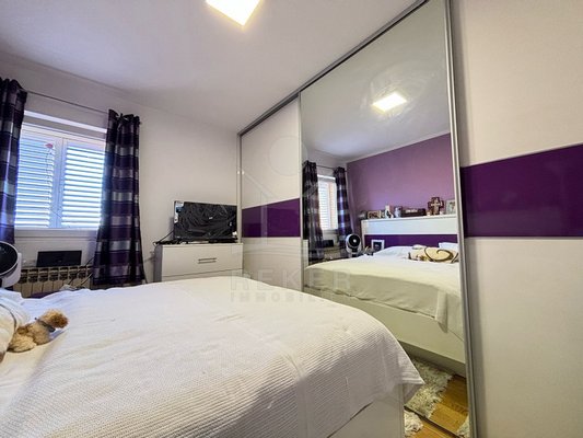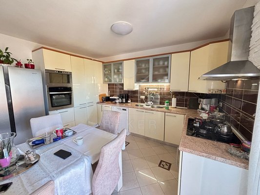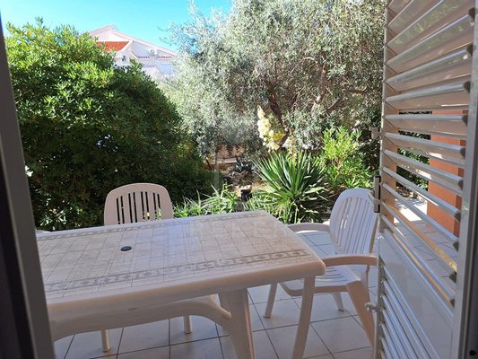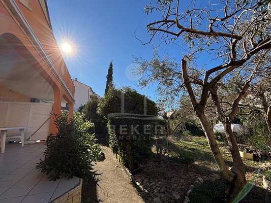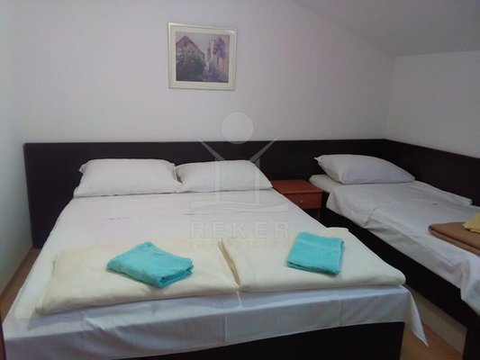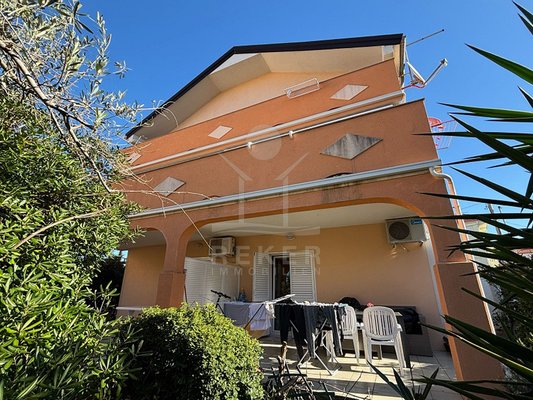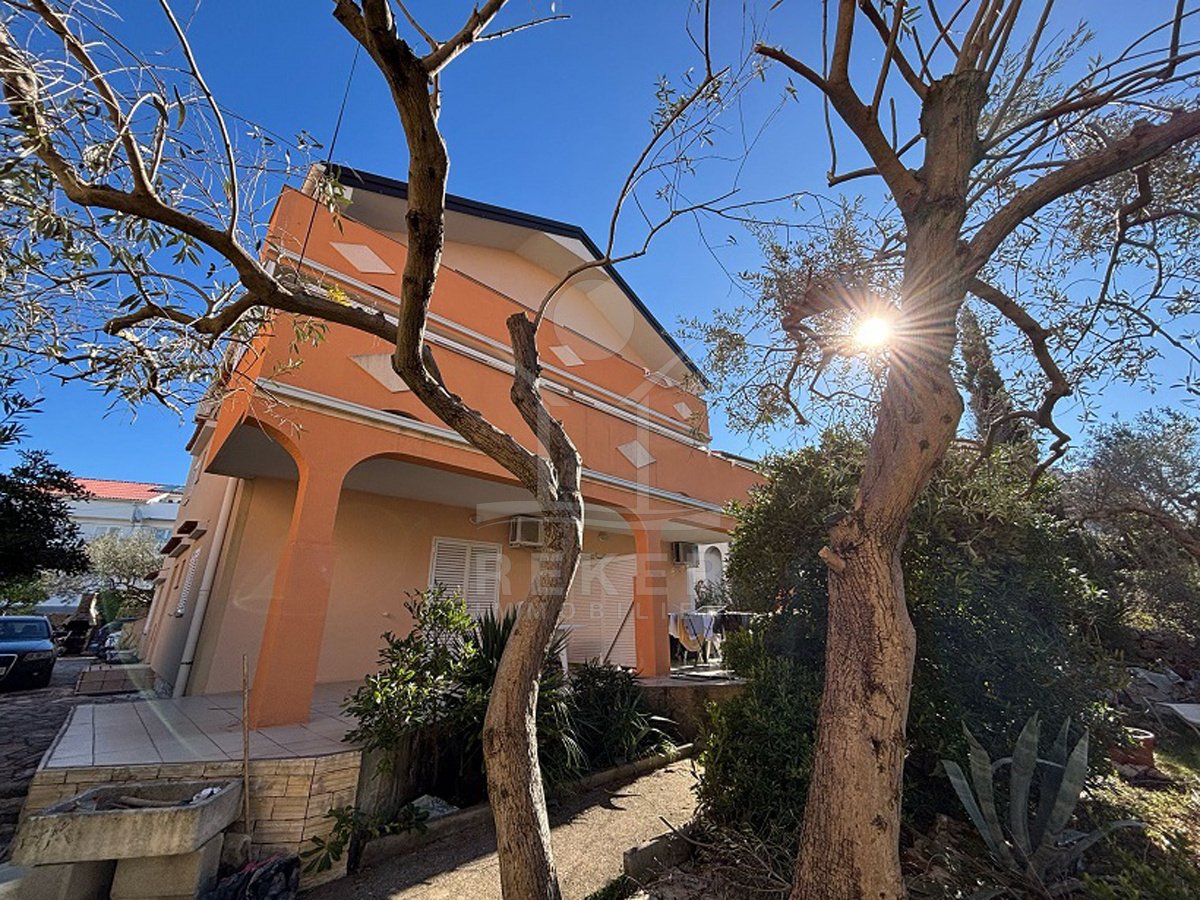 Novalja zeigt hier seinen ruhigen Kern. Nur rund 250 Meter vom Meer entfernt bietet dieses vielseitige Apartmenthaus kurze Wege und ein entspanntes Umfeld. Auf dem Grundstück stehen fünf Parkplätze und eine Garage bereit.
