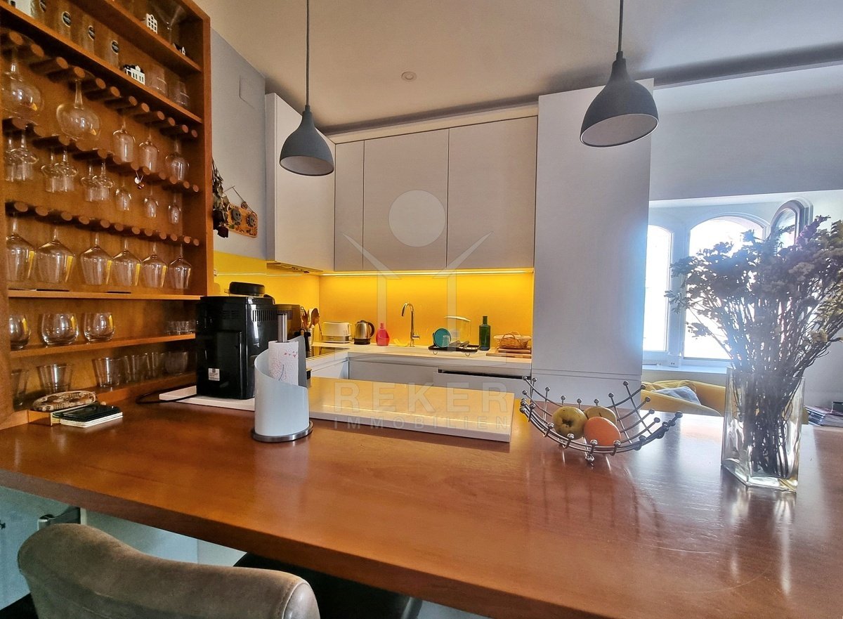 Mitten in Opatija, nur 100 Meter vom Meer entfernt, wartet eine besondere Wohnung auf Sie. Sie wohnen in einer gepflegten Altbauvilla, umgeben von Promenade, Geschäften und Restaurants, alles nur wenige Schritte entfernt. Direkt vor dem Haus befindet sich ein Parkplatz, auf dem Sie bei Bedarf zwei Stellplätze erwerben können. Ein echter Pluspunkt in dieser begehrten Lage.