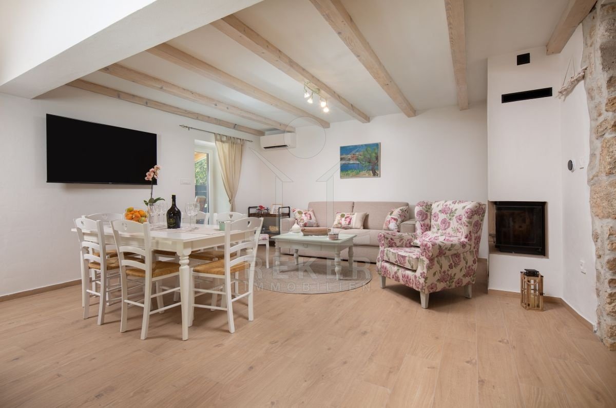 In Bribir, rund 3.500 Meter vom Meer und 1.000 Meter vom Ortszentrum entfernt, wartet ein renoviertes Steinhaus in ruhiger Waldlage. Das 700 m² große Grundstück schenkt Ihnen viel Abstand zu den Nachbarn und damit spürbare Privatsphäre. Vier private Parkplätze stehen direkt am Haus bereit. Ein stiller Ort zum Ankommen.