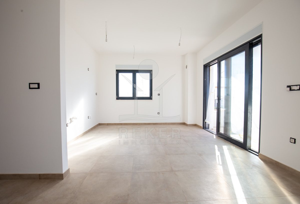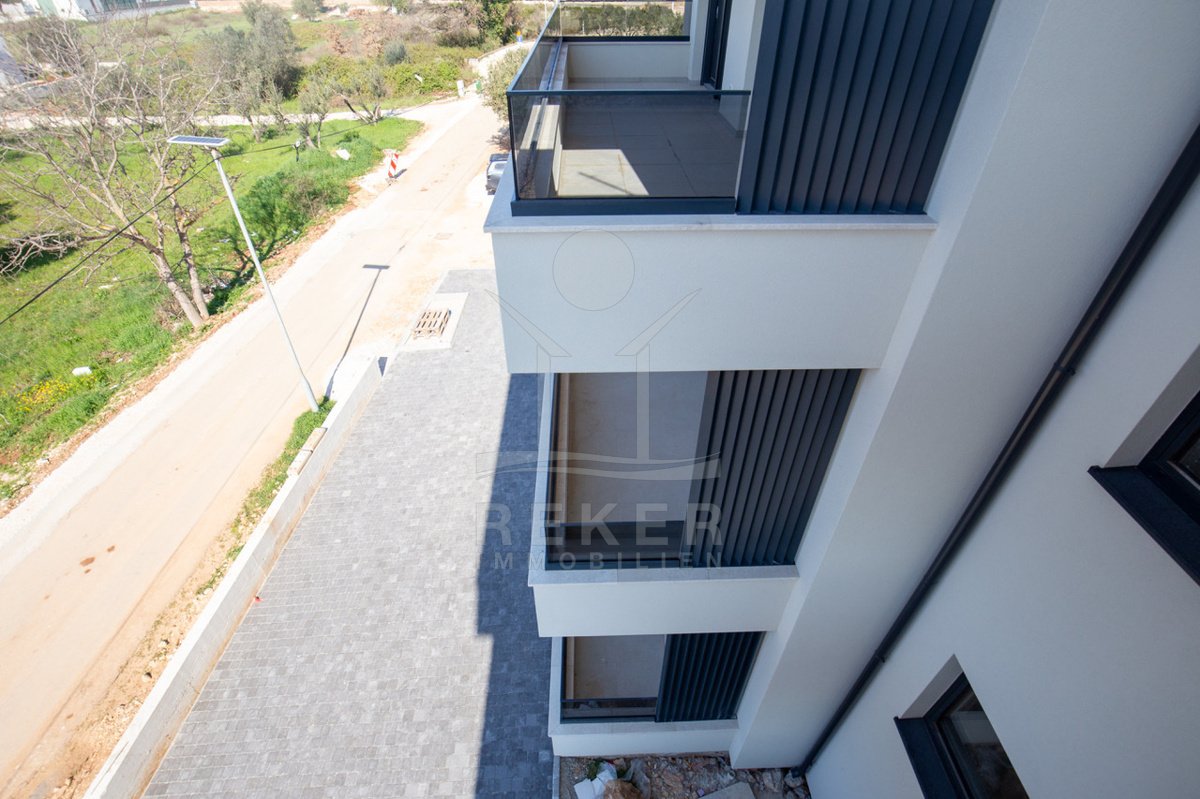 In Sukošan, einem beliebten Küstenort in Dalmatien, entsteht ein modernes Wohnhaus, nur 250 Meter vom Meer entfernt. Die südwestliche Ausrichtung sorgt für helle Räume und angenehme Sonnenstunden am Nachmittag. Das Umfeld ist ruhig, grün und