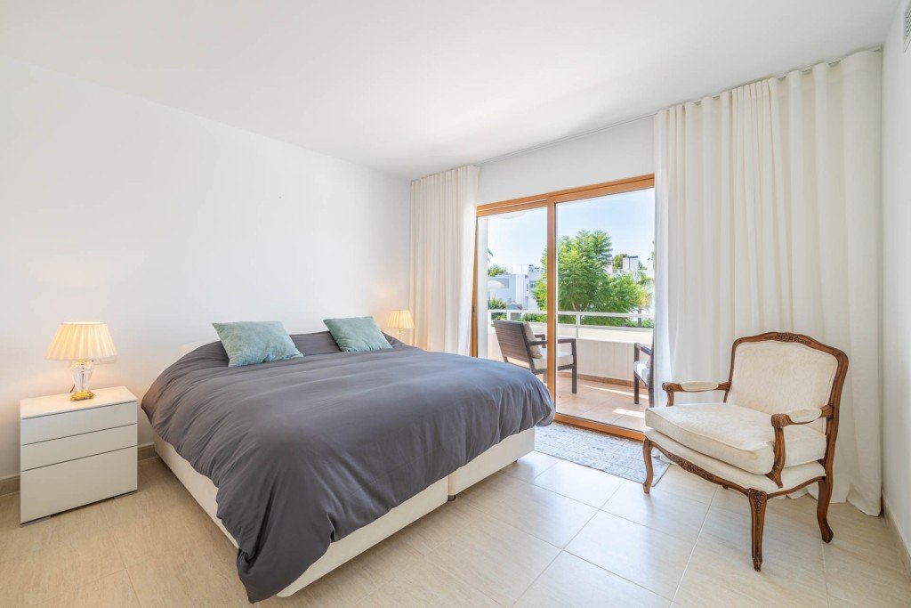 Im zweiten Stock befindet sich die Mastersuite mit einem Super-Kingsize-Bett, eigenem Bad und zwei privaten Terrassen, eine auf jeder Seite des Zimmers, die für viel natürliches Licht und Aussicht sorgen.