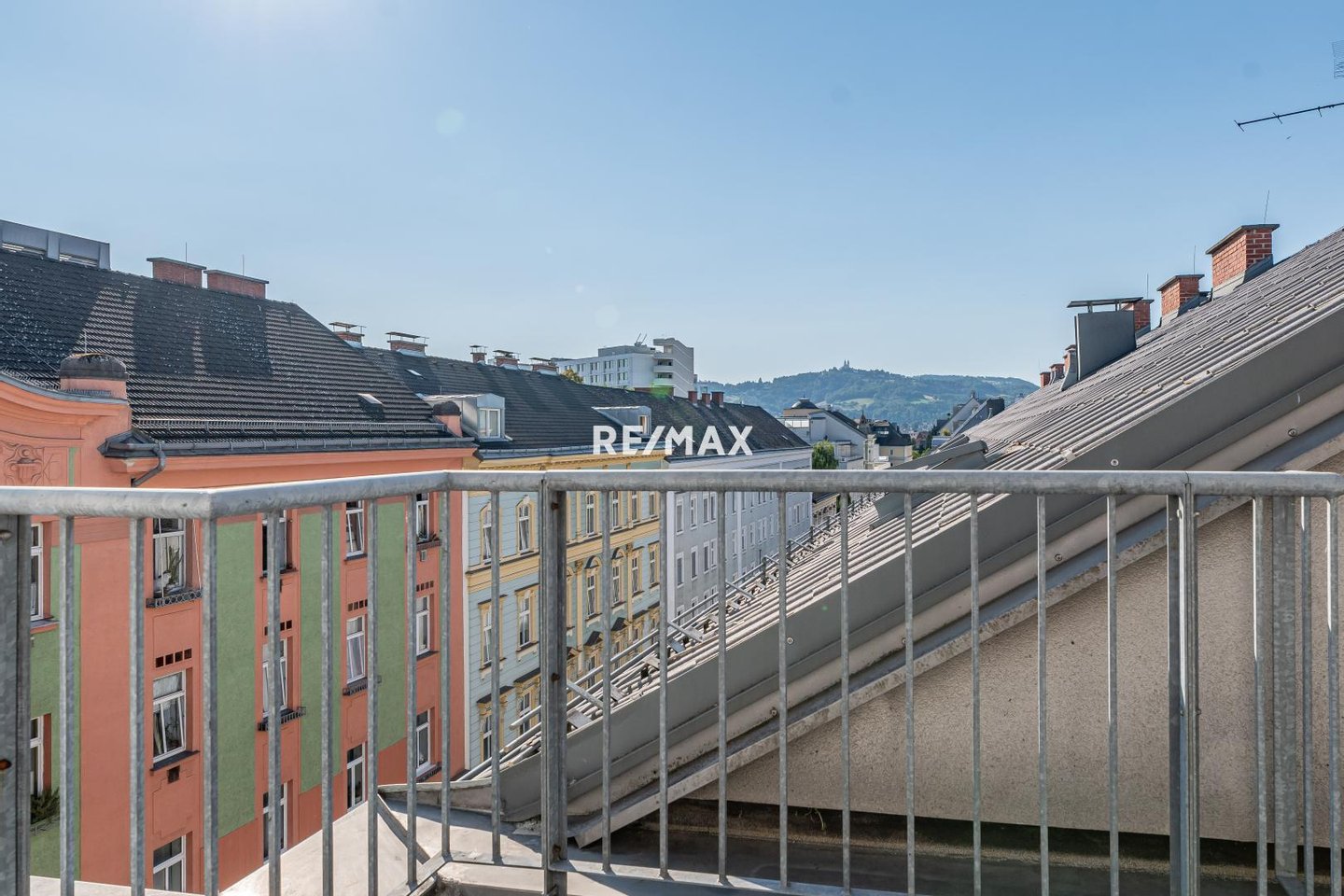 Das Highlight: eine ca. 21 m² große Dachterrasse mit Wasseranschluss und traumhaftem Blick auf den Pöstlingberg.