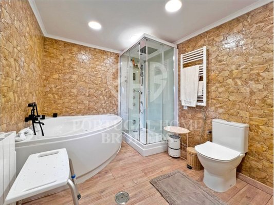 3 Schlafzimmer, Suite 18,70m² mit Kleiderschrank, WC Suite 3,90m² Duschwanne, WC und Waschbecken, Handtuchwärmer; 2 Schlafzimmer von 9,03 m² und 9,15 m², beide mit Einbauschränken; Toilettenservice 10,74 m² mit Doppelwaschbecken, Whirlpool, Hydromassagekabine, Handtuchwärmer.