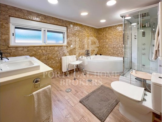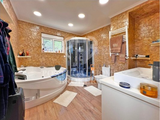 3 Schlafzimmer, Suite 18,70m² mit Kleiderschrank, WC Suite 3,90m² Duschwanne, WC und Waschbecken, Handtuchwärmer; 2 Schlafzimmer von 9,03 m² und 9,15 m², beide mit Einbauschränken; Toilettenservice 10,74 m² mit Doppelwaschbecken, Whirlpool, Hydromassagekabine, Handtuchwärmer.