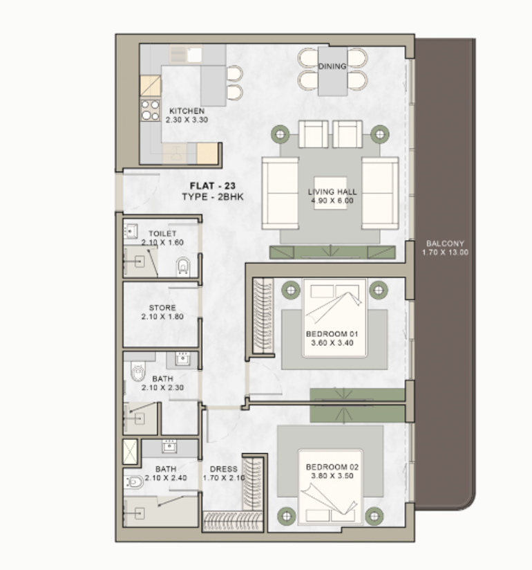 Anbieter-ObjektnummerHelvetia 2BHK APT - DV-8039