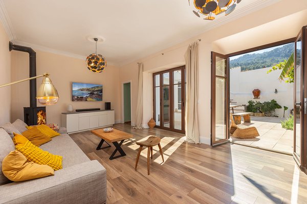 Originale Sichtbalken, hochwertige Parkettfußböden, ein rustikaler Holzofen sowie neue Doppelfenstertüren im mallorquinischen Stil und ausgesuchte Details verleihen dem Haus eine behagliche Atmosphäre. Helle Erdtöne und die Südwestausrichtung sorgen für ein sonnendurchflutetes warmes Wohnambiente.