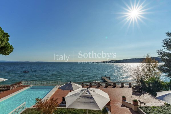 In einer der spektakulärsten Lagen des Gardasees erhebt sich dieses exklusive Anwesen direkt am See, eingebettet in einen etwa 8.000 m² großen Privatpark mit einem üppigen Pinienwald, der sanft bis zum kristallklaren Wasser abfällt. Ein Rückzugsort vollkommener Privatsphäre und Ruhe, nur wenige Schritte vom Zentrum von Padenghe sul Garda und allen Annehmlichkeiten entfernt - ein Ort, an dem die Zeit langsamer zu vergehen scheint, angesichts eines unvergleichlichen Naturszenarios.