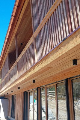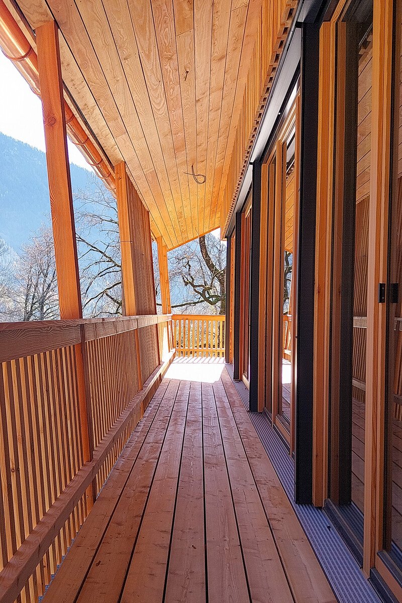 - Ökologisch hochwertiger Holzrahmenbau mit Vollholzkern und Holzfaserdämmung
