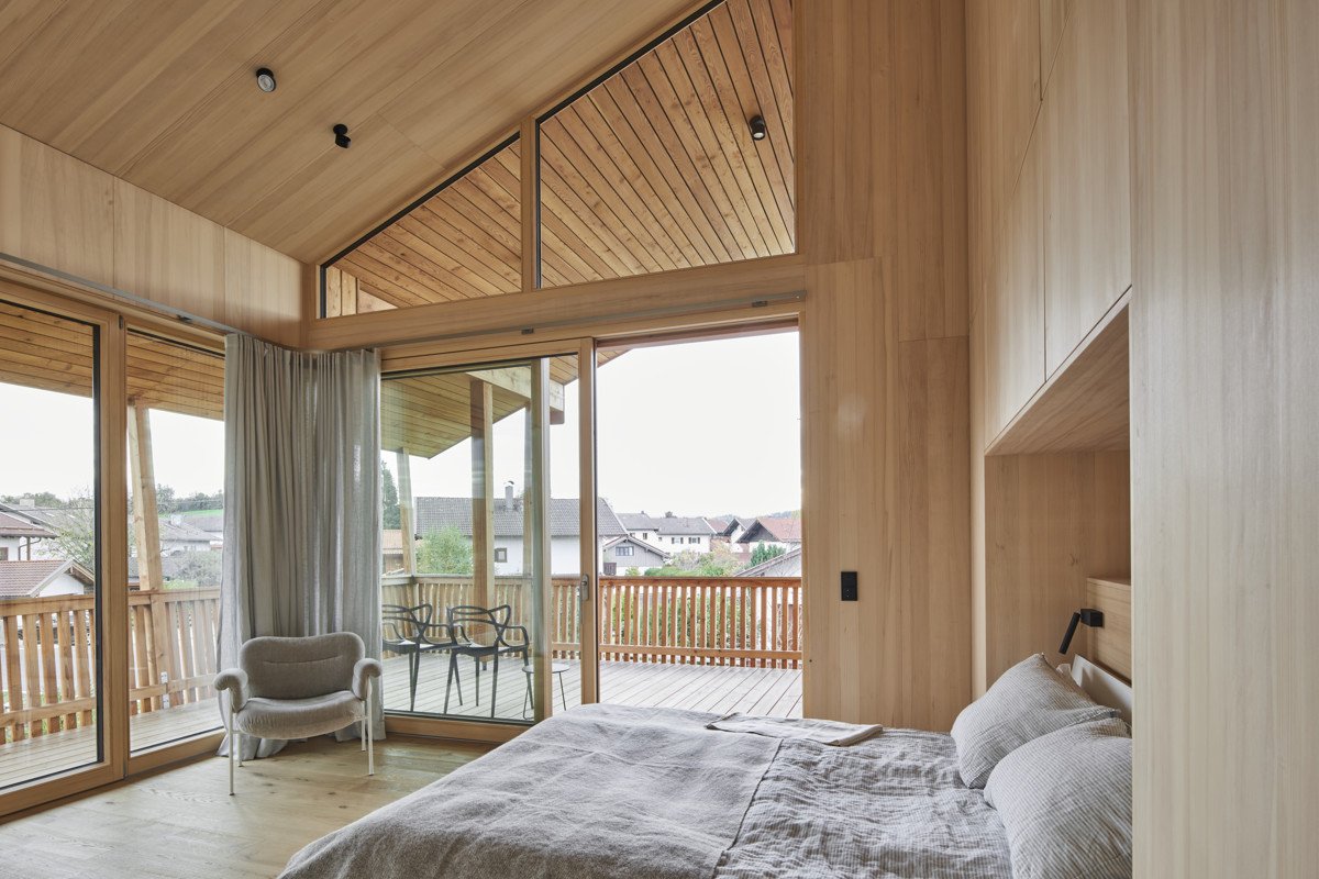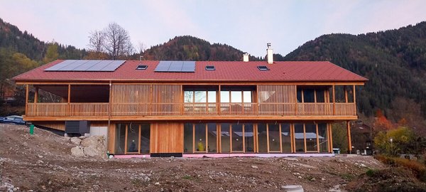 - Ökologisch hochwertiger Holzrahmenbau mit Vollholzkern und Holzfaserdämmung