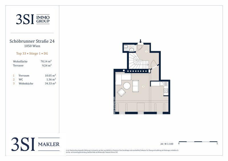 Diese moderne 2-Zimmer-Dachgeschosswohnung in 1050 Wien bietet Ihnen auf ca. 70m² nicht nur einen luxuriösen Wohnstandard, sondern auch eine attraktive Lage mit sehr guter Anbindung an das Wiener Stadtleben. Die Wohnung befindet sich in einem Top-Zustand und besticht durch die moderne und hochwertige Ausstattung. Der edle Eicheparkettboden sorgt für eine warme Atmosphäre in den Wohnräumen, das großzügige Bad ist mit hochwertigen Materialien ausgestattet und verfügt über eine moderne Dusche. Der schöne Ausblick über die Dächer Wiens und der komfortable Zugang zur Terrasse machen diese Wohnung zu einem besonderen Wohnjuwel. Ideal für Paare und Singles, die eine außergewöhnliche Immobilie suchen.