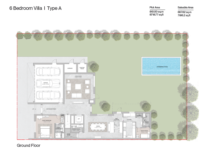 Wenn Sie diese atemberaubende Luxusvilla mit 6 Schlafzimmern erkunden, werden Sie von der Schönheit und Ruhe, die Sie umgibt, begeistert sein. Die Villa befindet sich in einer Gemeinschaft mit über 10.000 Bäumen, die sich auf sieben einzigartige Parks verteilen, die von den globalen Wäldern inspiriert sind.