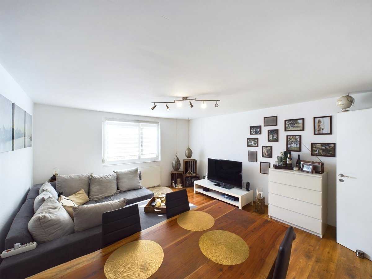 Das Wohnzimmer überzeugt durch seine Größe mit möglicher Integration eines Esszimmers.
