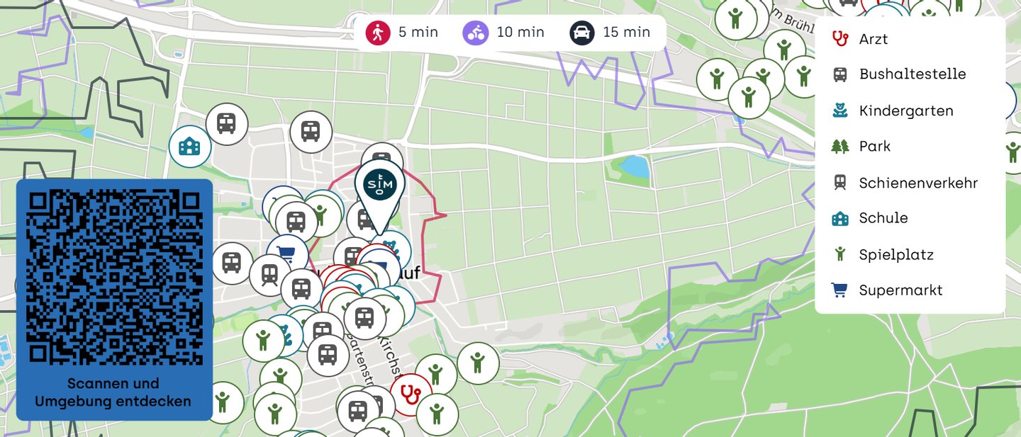 *Infrastruktur* Der Ortsteil ist hervorragend durch den öffentlichen Nahverkehr verbunden, mit mehreren Bushaltestellen direkt in der Nähe, einschließlich der Haltestelle am Peronnas-Platz. Die Nähe zur Autobahn A 8 erleichtert schnelle Verbindungen zu umliegenden Städten und städtischen Zentren. Parkplätze sind in ausreichender Anzahl vorhanden, vor allem rund um das Rathaus und verschiedene Tiefgaragen. In fußläufiger Entfernung befinden sich zahlreiche Einrichtungen, die den täglichen Bedarf abdecken, darunter Supermärkte wie CAP-Markt, PENNY und EDEKA sowie mehrere Apotheken und diverse Bäckereien. Ein umfassendes Angebot an Bildungseinrichtungen ist vorhanden, mit Kindergärten und Schulen, welche für junge Familien besonders attraktiv sind. Für die medizinische Versorgung stehen eine Vielzahl von Ärzten und Fachärzten zur Verfügung. Spezialisierte Kliniken in unmittelbarer Nähe runden das Gesundheitsangebot ab.