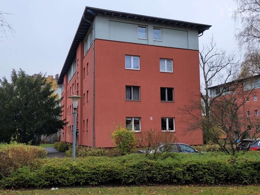 Ruhige Lage: Das Gebäude befindet sich in der zweiten Reihe, abseits des Straßenlärms, und bietet Ihnen einen herrlichen Blick ins Grüne.
