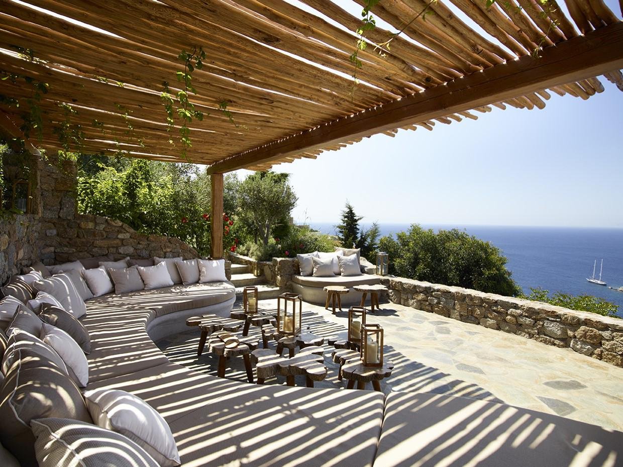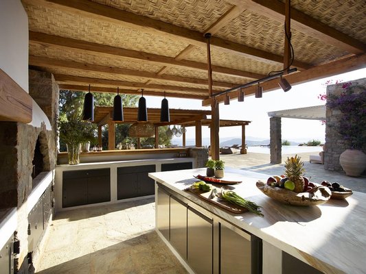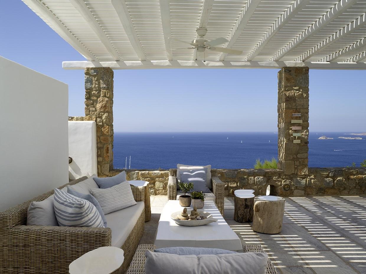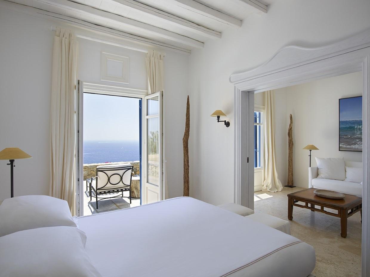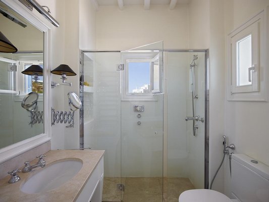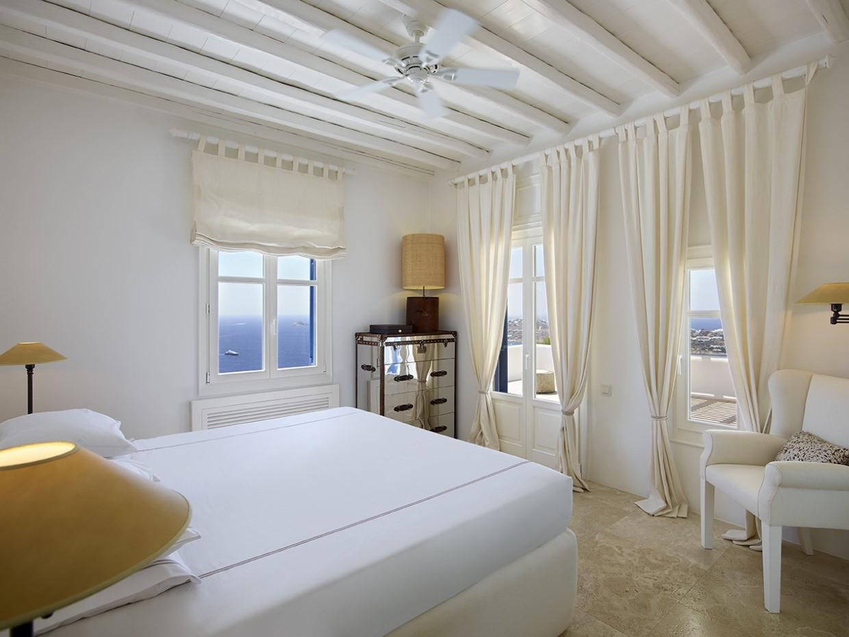 Treten Sie ein in ein Reich der Raffinesse, in dem fünf geräumige Schlafzimmer jeweils über ein eigenes Bad verfügen, das ultimative Privatsphäre und Komfort gewährleistet. Die Master-Suite mit eigenem Balkon, atemberaubendem Blick auf die Ägäis, begehbarem Kleiderschrank und ruhigem Ambiente ist der Inbegriff von Entspannung.