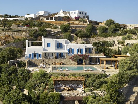 Entdecken Sie unvergleichlichen Luxus im Herzen von Mykonos mit dieser atemberaubenden 960 Quadratmeter großen Villa, die sich auf einem weitläufigen 4.500 Quadratmeter großen Grundstück befindet. Dieses architektonische Meisterwerk verbindet nahtlos