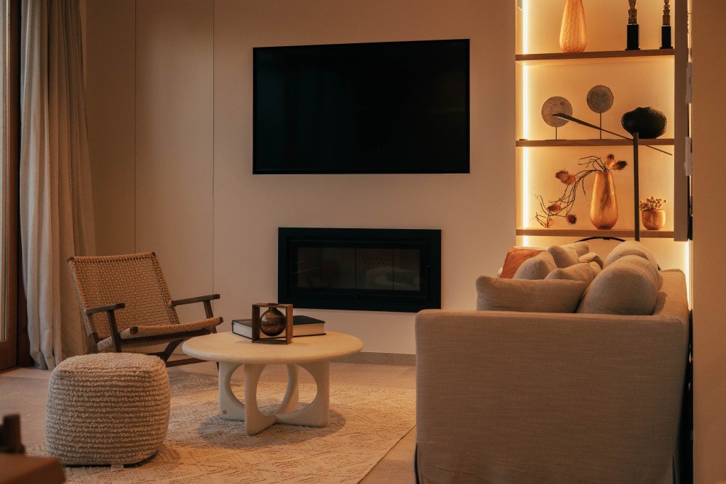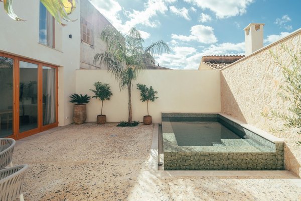 Das Haus erstreckt sich über drei durchdacht gestaltete Ebenen und verfügt über hochwertige Natursteinböden, Fußbodenheizung im gesamten Haus, diskret integrierte Klimaanlage und ein eingebautes Sonos-Audiosystem. Die Einrichtung strahlt eine elegante, einladende Atmosphäre aus, die durch sorgfältig ausgewählte Materialien und eine beruhigende mediterrane Farbpalette unterstrichen wird.