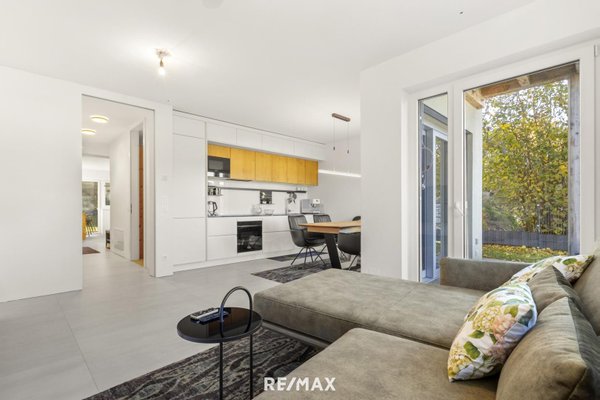 Die moderne Einbauküche ist mit hochwertigen Markengeräten ausgestattet und lässt keine Wünsche offen. Zwei (Schlaf-)Zimmer, ein elegantes Badezimmer mit bodengleicher Dusche und WC sowie ein separates Gäste-WC runden das Raumangebot harmonisch ab.