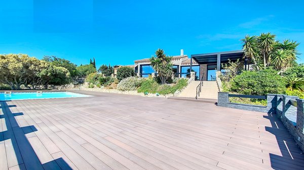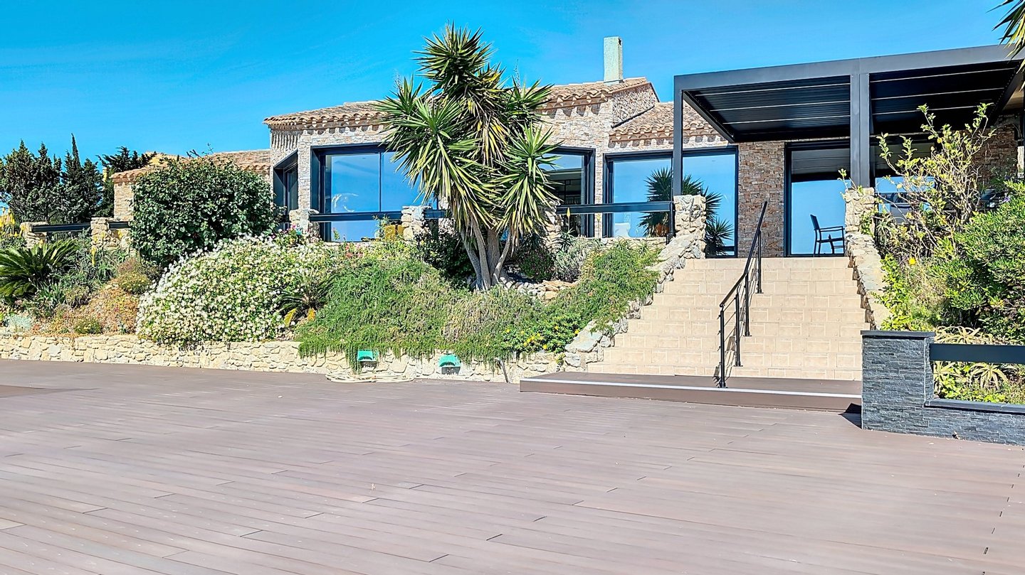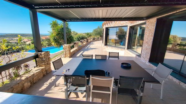 In einem kleinen typischen Dorf der CORBIERES MARITIMES (FITOU im Departement AUDE) und in der Touristengegend von "LEUCATE" am Fuße der CORBIERES gelegen, entdecken Sie diese ebenerdige Villa im mediterranen Stil mit Pool, einer Nutzfläche von 319 m² (Wohnfläche ohne Nebengebäude 223 m²) auf einem Baugrundstück von 3.256 m² und mit einem außergewöhnlichen Blick auf den Teich und das Meer. FITOU liegt an der Grenze zu den Pyrénées Orientales, eingebettet zwischen dem Etang de LEUCATE, den es überragt, und den Corbières Maritimes, die es dominieren, grenzte das Dorf bis zum Pyrenäenvertrag von 1659 an Spanien, dessen Überbleibsel aus dieser Zeit ein Schloss ist, an dessen Fuß sich das Dorf ab 1750 entwickelte. Sie können von den Wanderwegen profitieren und die Weine des prestigeträchtigen Weinbergs BERCEAU AOC FITOU probieren. Dieses Haus mit Panoramablick auf das Meer liegt auf den Höhen eines Dorfes mit 1100 Einwohnern, das über die wichtigsten kleinen Geschäfte verfügt. Es wurde im Jahr 2000 erbaut und perfekt gepflegt. Es liegt 5 Minuten von den Stränden von LEUCATE und LA FRANQUI entfernt, 39 km von Narbonne, 29 km von Perpignan und in der Nähe der Landstraße, die NARBONNE und PERPIGNAN verbindet, sowie der Autobahnauffahrt zur A9. Dieses Haus ist nach Süden / Osten und Süden / Westen ausgerichtet und liegt auf den Anhöhen des Dorfes, in einem sehr ruhigen Wohngebiet, in der Nähe der wichtigsten Annehmlichkeiten im Zentrum des Dorfes. Dieses helle Haus bietet eine hochwertige Ausstattung und umfasst: 1 Eingangshalle, 1 Wohn-/Esszimmer mit doppeltem Kamin und Zugang zu einer 120 m² großen Terrasse mit Meerblick und Blick auf den Pool (30 m² davon sind von einer gemauerten Pergola überdacht und werden für Mahlzeiten im Freien genutzt), 1 voll ausgestattete Küche, 4 Schlafzimmer, 2 Dusch-/Badezimmer, 2 separate WCs, 1 Waschraum. Die Immobilie bietet eine interne Parkmöglichkeit für 7/8 Fahrzeuge zwischen der geschlossenen Garage von 120 m² und den Außenbereichen. Diese Immobilie umfasst außerdem: eine unabhängige Wohnung mit einer Fläche von ca. 55 m², bestehend aus einem Wohnzimmer mit offener Einbauküche, einem Schlafzimmer, einem Badezimmer, einer Toilette und einer Terrasse von 21 m², die an sie angebaut ist. Die Ausstattung ist von hoher Qualität: automatisches Tor, umkehrbare Klimaanlage, Doppelverglasung, elektrische Rollläden, Bohrloch - Der Garten wurde angelegt. Die kleinen Geschäfte und Annehmlichkeiten befinden sich im Dorf (größere Supermärkte in SIGEAN / PORT LA NOUVELLE). La sua posizione e la sua vista sono semplicemente eccezionali !!!! . Splendida proprietà ai margini della costa catalana (OCCITANIE) con un clima mite e soleggiato tutto l'anno!!!! Da non perdere!