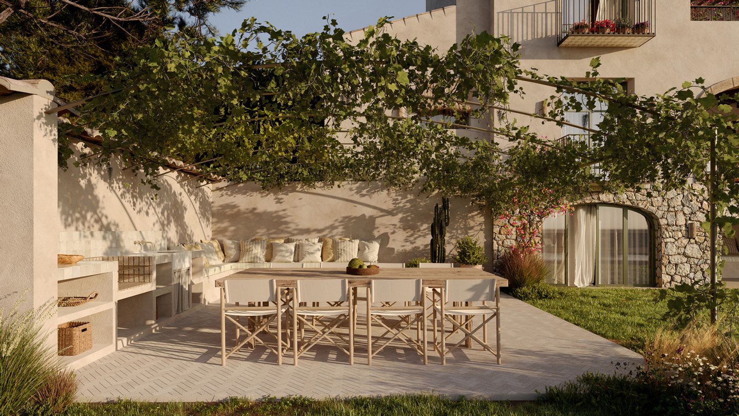 Im Außenbereich bietet die Immobilie einen beeindruckenden Poolbereich von 160 m² mit Blick auf das Land und die Berge, umgeben von einem gepflegten privaten Garten. Der Außenbereich wird durch mehrere Terrassen, sowohl überdacht als auch offen, einen 36 m² großen Grillbereich, der sich ideal für gesellige Zusammenkünfte im Freien eignet, und einen traditionellen Riu Rau von 50 m², der Charakter und Funktionalität verleiht, ergänzt. Darüber hinaus gibt es einen privaten Parkplatz mit 34 m².