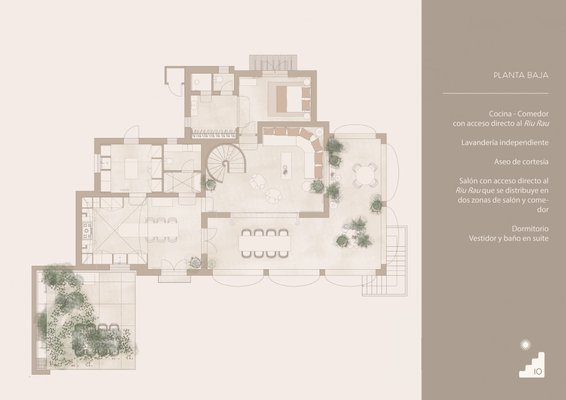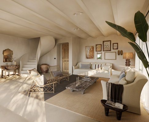 Im Erdgeschoss befinden sich das Wohnzimmer mit Zugang zur Naya-Riu Rau, das Esszimmer und die Küche mit Zugang zum Hauswirtschaftsraum sowie ein Gäste-WC und ein Schlafzimmer mit Ankleidezimmer und eigenem Bad.