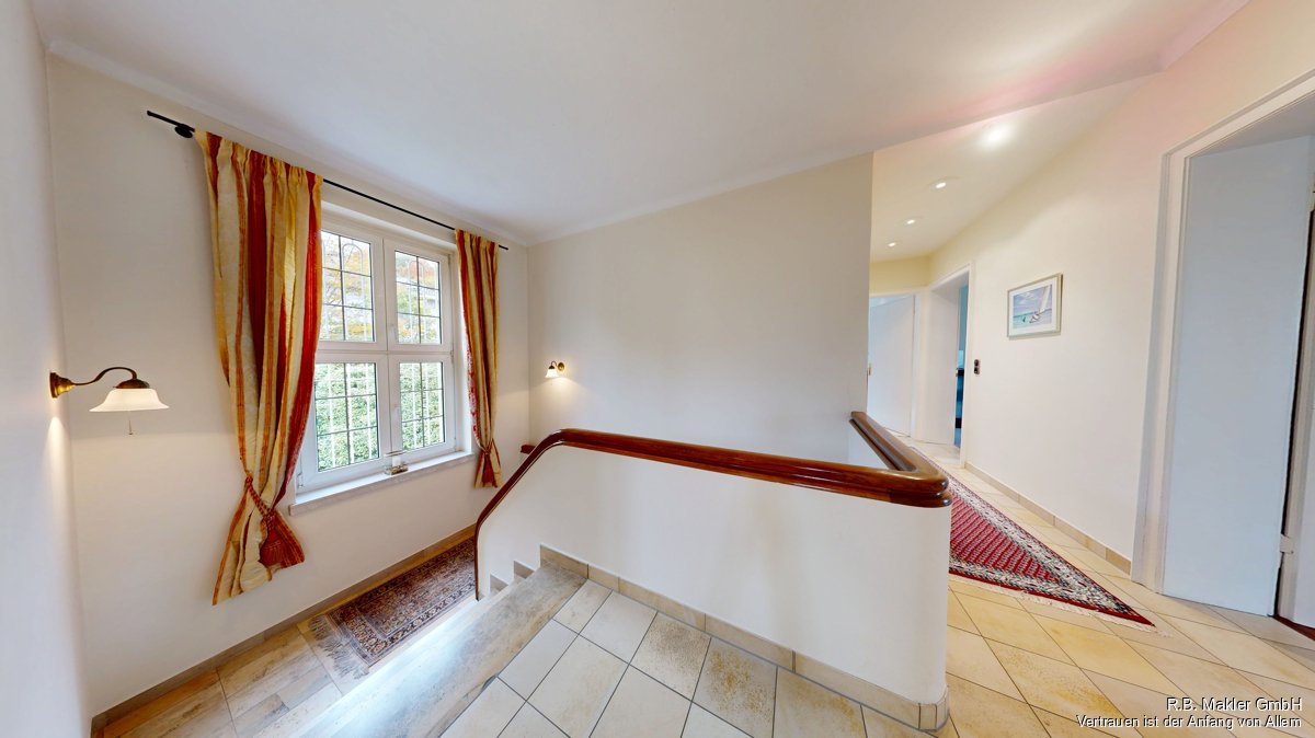 Im Inneren entfalten sich auf rund 228 m² Wohnfläche helle, freundliche Räume mit einer Atmosphäre, die Geborgenheit schenkt und zugleich Raum zum Atmen lässt. Der Wintergarten mit Kaminzimmer lädt dazu ein, den Blick über den Garten schweifen zu lassen, während das Feuer knistert und der Alltag in weite Ferne rückt.