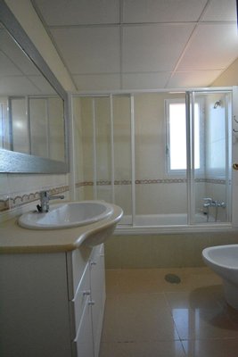 Die Wohnung hat eine Wohnfläche von 91 m² und befindet sich im ersten Stock eines gepflegten Gebäudes mit Aufzug. Sie verfügt über drei Schlafzimmer mit Einbauschränken und zwei Badezimmer, eines mit Badewanne und das andere mit Duschkabine, beide