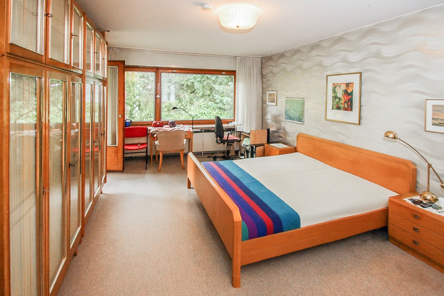 Dieses 11 m breite Einfamilienhaus in idealer Südwestlage bietet auf zwei Etagen 160 m² Wohnfläche. Das modernisierungsbedürftige Einfamilienhaus wurde 1965 erbaut und verfügt über vier bis fünf Schlafräume, Keller und zwei Garagen im Bauwich.