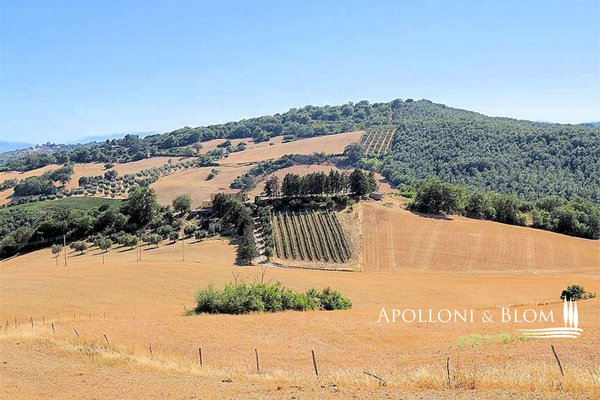 In dominanter Lage, nur 4 km von den Dienstleistungen entfernt, steht dieses exklusive und private Anwesen aus Stein mit Weinberg und Olivenhain in Magliano in der Toskana zum Verkauf. Im Herzen der toskanischen Maremma, nicht weit vom Schloss Pereta entfernt, liegt dieses ländliche Anwesen, das von der Meeresbrise umschmeichelt wird, umgeben von etwa vierzig Hektar Land, das einen Blick von seltener Schönheit auf die Landschaft und die Insel Giglio bietet. Das Ensemble besteht aus einem maremmanischen Haupthaus und landwirtschaftlichen Gebäuden, die von einer Tradition zeugen, die ihre Wurzeln im 19. Jahrhundert hat. Das Haupthaus, das um 1800 aus Stein erbaut und in den 1950er Jahren verputzt wurde, erstreckt sich über zwei Etagen mit einer Gesamtfläche von 250 Quadratmetern. Das Gebäude ist derzeit in zwei Einheiten unterteilt: Im Erdgeschoss befinden sich auf 60 Quadratmetern eine Küche, zwei Schlafzimmer und ein Badezimmer; im ersten Stock gibt es vier Schlafzimmer, eine Küche, ein Badezimmer, ein Wohnzimmer mit Kamin, eine Loggia sowie einen Keller/Abstellraum und einen Heizungsraum. Drei Nebengebäude aus Stein vervollständigen den Komplex mit einer Gesamtfläche von 240 Quadratmetern. Das Anwesen erstreckt sich über 40 Hektar, wovon 12 Hektar bewaldet sind, der Rest ist hauptsächlich Ackerland mit 2.000 Quadratmetern Weinberg und 100 Olivenbäumen. Es besteht die Möglichkeit, ein Schwimmbad zu bauen. Die geografische Lage garantiert eine ideale Abgeschiedenheit, weit weg von lauten Straßen und Installationen, mit Zugang über eine 600 Meter lange unbefestigte Straße, die die Zufahrt bildet. Eine einmalige Gelegenheit für diejenigen, die die Authentizität der toskanischen Landschaft genießen möchten, indem sie ihr Gedächtnis respektieren und ihr architektonisches Erbe aufwerten.