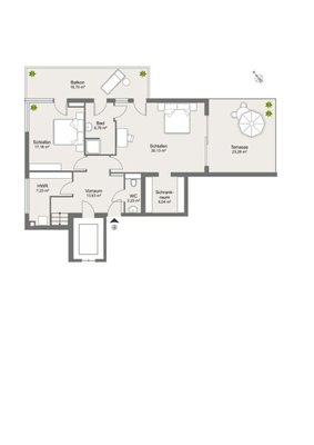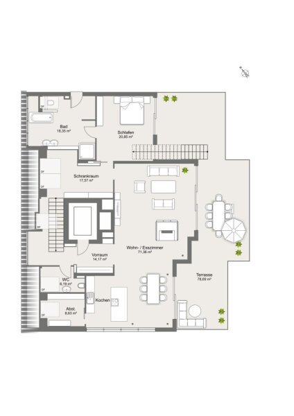 Die abgebildete Möblierung dient der Illustration. Die Wohnung wird unmöbliert übergeben. Die hochwertige Einbauküche sowie die fix eingebauten Schränke verbleiben in der Wohnung.