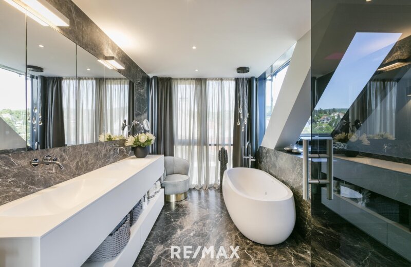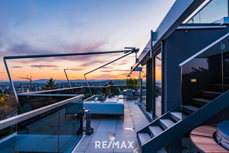 Dieses exklusive Penthouse ist mehr als nur ein Zuhause – sie ist ein Rückzugsort, ein Statement, ein Ort der Ruhe und Inspiration. Hoch über der Stadt gelegen und dennoch in 15 Minuten im Zentrum, eröffnet sich hier ein unvergleichliches Wohnerlebnis mit Rundumblick auf die markantesten Wahrzeichen Wiens: der majestätische Stephansdom, die Gloriette im Schlosspark Schönbrunn, der Kahlenberg und die Weite des Wienerwalds.