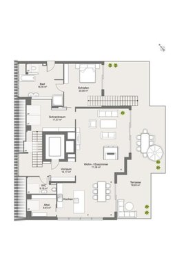 Mit einer Wohnfläche von ca. 240 m² auf zwei Etagen und zusätzlich rund 281 m² großzügig gestalteter Terrassenfläche erfüllt diese Immobilie höchste Ansprüche an Raum, Licht und Komfort. Die drei Schlafzimmer, zwei stilvoll ausgestattete Bäder (eines davon mit eigener Sauna), drei separate WCs sowie eine offene, maßgefertigte Eggersmann-Küche bieten alles, was modernes, anspruchsvolles Wohnen ausmacht.