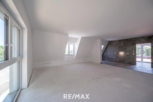 Das Highlight des Hauses: ein großzügiger Master-Bedroom im Obergeschoss, der nicht nur mit Weitblick begeistert, sondern auch die Möglichkeit eines offenen Badezimmers mit freistehender Badewanne bietet – ein Ort des Rückzugs; zum Aufatmen, Genießen und Träumen. Von hier führt der Weg direkt auf eine große Südterrasse mit unverbaubarem Blick auf den Wienerwald – ein Luxus, den man spürt, sobald man die Tür öffnet. (Achtung: Wem dieses Schlafzimmer zu groß ist, -> es besteht die Möglichkeit, daraus zwei Räume zu machen, die immer noch großzügig bemessen sind.)