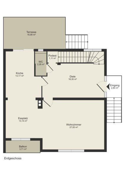 - Große Terrasse im EG ca.18 m2, 1 Balkon im EG und 1 Balkon im Obergeschoss