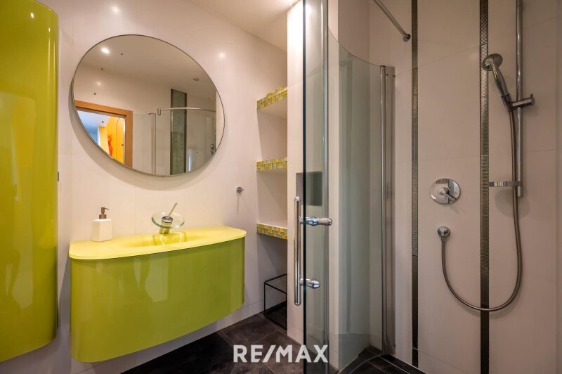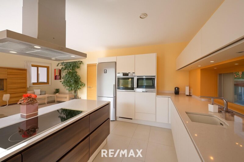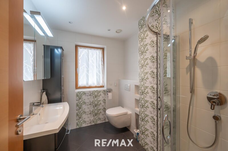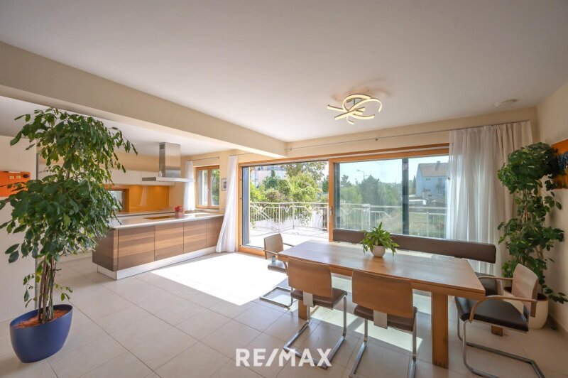 oErdgeschoß (auf Straßenniveau): ca. 47 m² große Wohnküche mit Speis, Lichtdurchflutung über mehrere Fenster und einer 5 Meter Glasfront, wobei die 33 m² Terrasse über eine 2,5 Meter lange Hebe-Schiebetüre begehbar ist, Kachelofen, weiteres ist auch die 2. Terrasse über eine Balkontüre vom Wohnzimmer auch erreichbar ist, das angrenzende Zimmer hat ebenso einen Terrassenzugang, Duschbad mit WC und Urinal, Vorraum und direkter Zugang zur beheizten Doppelgarage mit elektrischem und alarmgesicherten Tor
