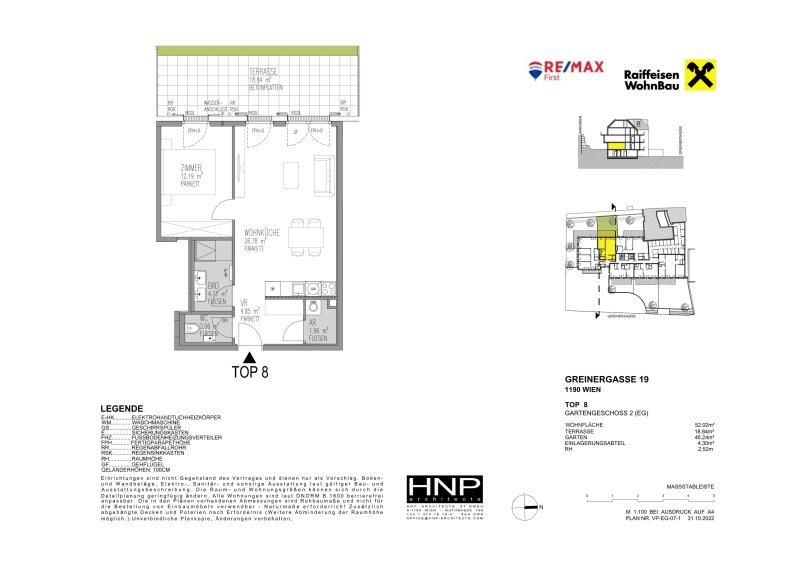 Diese erstklassige Gartenwohnung mit einer Wohnfläche von 52,02 m² und einem durchdachten Raumkonzept, das Ihnen alle Möglichkeiten bietet, Ihre persönliche Wohlfühloase zu gestalten. Mit zwei hellen Zimmern, die viel Platz für Ihre individuellen Einrichtungswünsche lassen, ist diese Wohnung ideal für Singles, Paare oder als Investitionsobjekt.