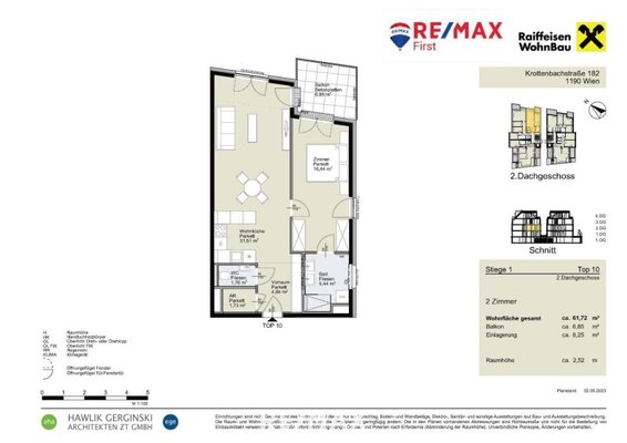 Die 2 Zimmerwohnung bietet eine durchdachte Wohnfläche von 61,72 m², die sich wie folgt aufteilt: