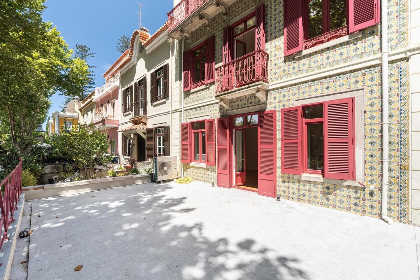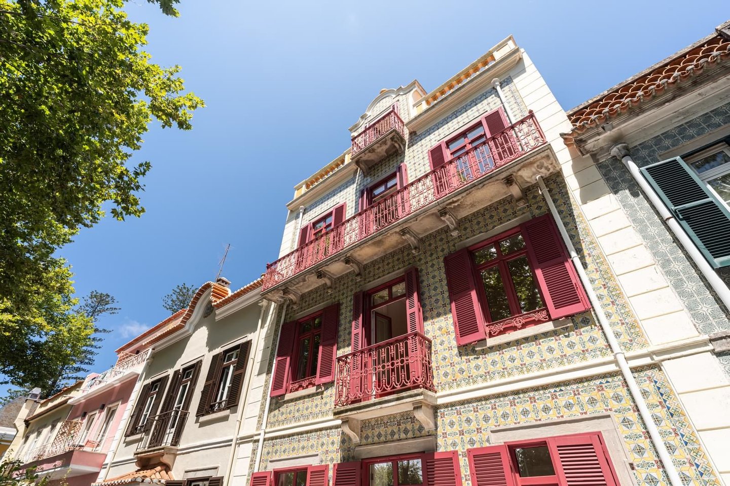 Historic Building on Sintra’s Correnteza~~Stunning Views of the Mountains and Palaces | 3 Independent Units | Luxury Finishes~~A unique property built in the second half of the 19th century, located on the emblematic Correnteza in Sintra — one of the most sought-after areas of the town — offering panoramic views of the mountains and palaces.~~Ideal for families, couples, or as an income-generating investment, given its strategic location close to a wide range of services, public transport, and tourist attractions (local accommodation licenses in Sintra are currently being issued without restrictions).~~Originally built to house British engineers responsible for the construction of the Sintra railway line, the property later became, in the early 20th century, the residence of José Bento Costa, then Mayor of Sintra. At that time, the building was extended with two additional floors and acquired its distinctive tiled façade facing Alameda Barão Almeida Santos.~~With approximately 400 m2 of gross private area, the building can be sold as a whole or divided into three independent units (T3, T2, and T1), all featuring high-quality finishes and modern systems for air conditioning, ventilation, and lighting.~~Unit T3 — 262 m2 + 49 m2 Terrace with Parking~~Spread over 3 floors with 3.10 m ceiling height~~35 m2 living room with decorative wall panels~~15 m2 kitchen with Viúva Lamego tiles, lioz limestone countertop, and AEG appliances~~Guest bathroom~~3 suites (23 m2, 16 m2, 17 m2) with built-in wardrobes~~Bathrooms with custom furniture by Marcenaria Castro, Viúva Lamego tiles, and built-in shower systems~~Basement with private garage for 2 vehicles and equipped laundry room~~Utility room with BOSCH heat pump~~Unit T2 — 97 m2~~Single-floor layout with 3 m ceiling height~~Open-plan living room and kitchen totaling 35 m2~~Entrance hall and corridor~~Guest bathroom~~Suite (15 m2) + bedroom (10 m2)~~Bathrooms with custom furniture by Marcenaria Castro, Viúva Lamego tiles, and built-in shower systems~~Storage room on the ground floor~~Unit T1 — 75 m2~~Single-floor layout~~Entrance hall and corridor~~Open-plan living room and kitchen (26 m2)~~Bedroom (14 m2)~~Bathroom with custom furniture by Marcenaria Castro, Viúva Lamego tiles, and built-in shower system~~Built-in storage cupboards~~Storage room on the 2nd floor~~Highlights Common to All Units~~High-quality finishes: wooden flooring, interior shutters, ROCA suspended sanitaryware, and exclusive furniture by Marcenaria Castro~~High-efficiency air conditioning and ventilation systems, and AEG household appliances~~Excellent potential for permanent residence or premium rental market
