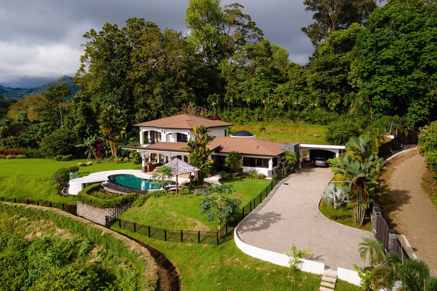 Eine seltene Vermächtnismöglichkeit bietet sich in der Villa Picasso, einem außergewöhnlichen Anwesen auf einem Bergrücken, das sich über 25 unberührte Meilen der Pazifikküste von Playa Guapil bis zum Manuel Antonio Nationalpark erstreckt. Wachen Sie zum Sonnenaufgang über Wildwasserlandschaften auf, verbringen Sie Nachmittage am Pool mit Cocktails an der Bar und beobachten Sie Wildtiere, wie sie durch den reifen Wald streifen. Der ganzjährig geöffnete Bach bietet eine beruhigende natürliche Klanglandschaft, während Sonnenuntergangstreffen auf der überdachten Terrasse zu geschätzten Ritualen werden. Vollständig renoviert mit anspruchsvollen Oberflächen und nahtlosem Fluss von drinnen und draußen, lädt das Wohnhaus zu müheloser Unterhaltung und einem ruhigen Alltag ein. Innerhalb der exklusiven Guapil Tropical Estates existiert ultimative Privatsphäre mit einem bequemen Zugang zu Dominicals Stränden und der Surfkultur. Zusätzliches bebaubares Grundstück bietet zukünftige Möglichkeiten, während der renovierte Zustand sofortige Freude an der Spitze des costaricanischen Luxuslebens gewährleistet.