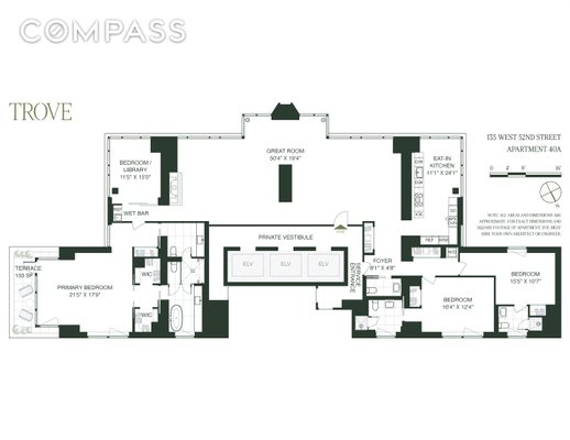 Auf dem 40. Stock gelegen, ist Residence 40A ein ganztraumiges Haus in Mint-Zustand mit 3.726 Quadratfuß Innenfläche und einer 153 Quadratfuß großen privaten Terrasse. Mit vier Fenstern und bodentiefen Fenstern füllen natürliches Licht und weite Skyline-Ausblicke jeden Raum. Sorgfältig von CetraRuddy entworfen, verbindet dieses Haus mit vier Schlafzimmern, drei Voll- und zwei halben Bädern ein raffiniertes Design mit außergewöhnlicher Funktionalität. Ein privater Aufzugsabsatz öffnet sich zu einem dramatischen Wohnzimmer, der von einem Marmorgas-Kamin verankert ist und von mehreren Sitzbereichen, einer maßgefertigten Minibar und einer angrenzenden Bibliothek umgeben ist – perfekt für den Alltag und elegante Unterhaltungen. Die fensterbedeckte Küche zum Essen ist mit Calacatta Vision Marmorarbeitsplatten, maßgefertigten Dada-Italienischen Walnussschränken sowie Miele- und Sub-Zero-Geräten ausgestattet, darunter zwei Öfen, eine Espressomaschine, einen Weinkühler und einen übergroßen Kühlschrank. Die Hauptsuite verfügt über einen eigenen privaten Flügel mit Terrassenzugang, zwei begehbaren Kleiderschränken und einem spaähnlichen Marmorbad mit einer freistehenden Kaldewei-Badewanne, einer begehbaren Dusche und Doppelwaschbecken. Zwei zusätzliche Schlafzimmer verfügen jeweils über Marmorbäder mit eigenem Bad und großzügigem Kleiderschrank, während ein viertes Schlafzimmer oder Homeoffice – getrennt durch eine Minibar – hervorragende Flexibilität bietet. Weitere Highlights sind ein zweiter privater Eingang, beheizte Badezimmerböden, breiter Holzboden und eine von Nest gesteuerte zentrale Klimaanlage. Die Bewohner der 135 West 52nd Street genießen erstklassigen Service und erstklassige Annehmlichkeiten, darunter ein 75-Fuß-Bahnbecken, ein Fitnesscenter, ein Spa, einen Golfsimulator, ein Kinderspielzimmer sowie einen 24-Stunden-Türsteher und Concierge.