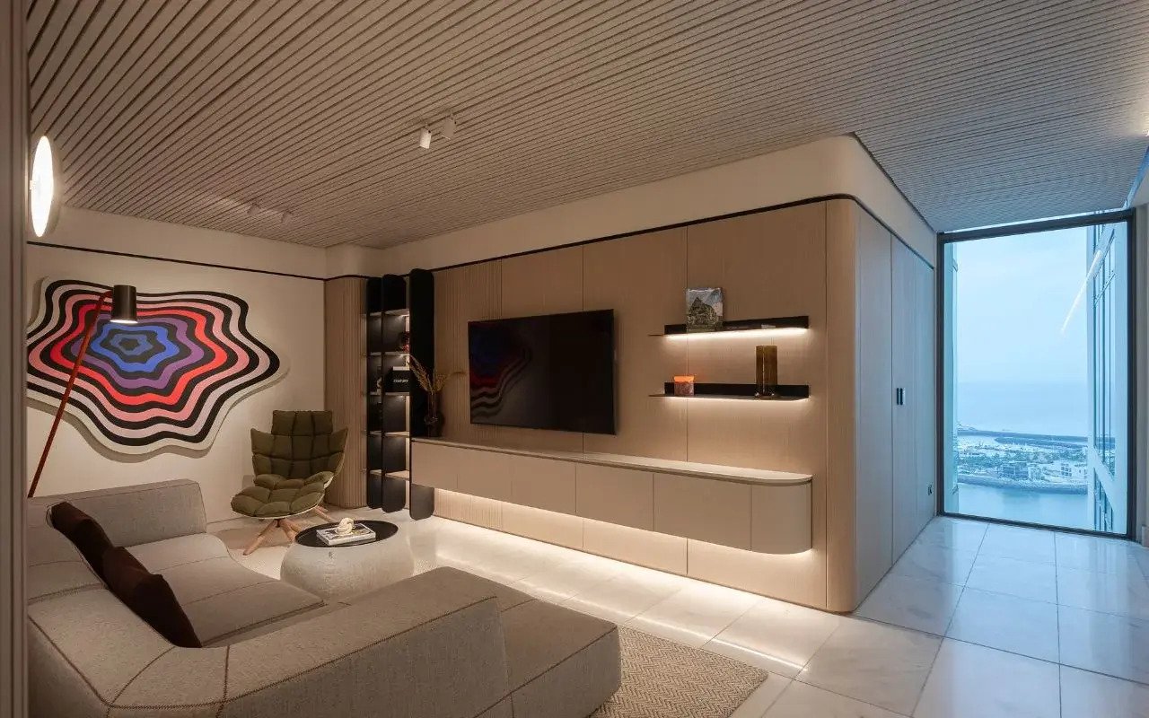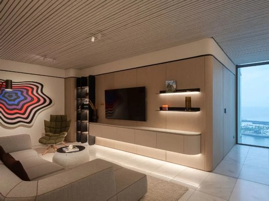 - Exklusive Annehmlichkeiten wie Cabanas am Pool, Autowaschanlage, Chauffeurbereich und eine spektakuläre Zugangslobby.
