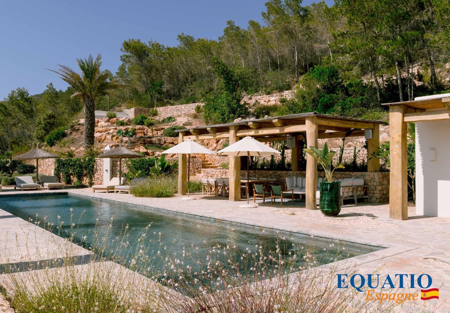 4 large bedrooms with dressing room, 4 bathrooms, living room with fireplace, dining room and fully fitted and equipped American kitchen, . . . with its private infinity pool.