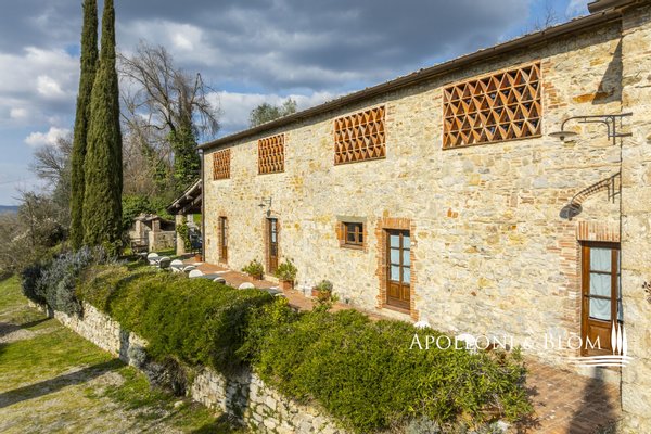 In 1700's Komplex im Herzen des Chianti Classico, renoviert mit Schwimmbad, Garten, zu verkaufen in der Nähe von Castellina in Chianti. Im historischen Herzen des Chianti Classico-Gebietes gelegenes Bauernhaus aus Stein aus dem Jahr 1700, das 2001 im