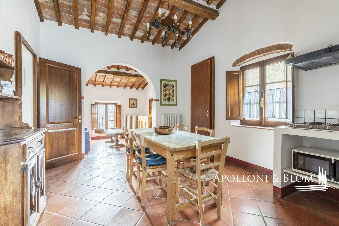 Typ: Teil eines steinernen Bauernhauses von 530 Quadratmetern, frei auf drei Seiten, auf zwei Ebenen, renoviert in mehrere Wohnungen mit Schwimmbad