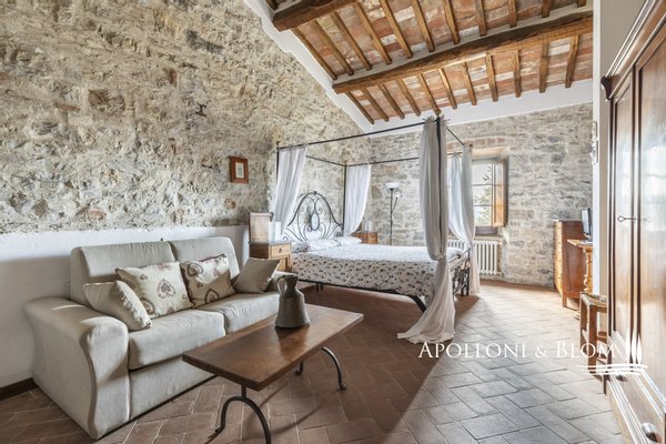 In 1700's Komplex im Herzen des Chianti Classico, renoviert mit Schwimmbad, Garten, zu verkaufen in der Nähe von Castellina in Chianti. Im historischen Herzen des Chianti Classico-Gebietes gelegenes Bauernhaus aus Stein aus dem Jahr 1700, das 2001 im typisch toskanischen Stil mit wertvollen traditionellen Elementen, Terrakottaböden und Decken mit Holzbalken und Gewölben renoviert wurde. Die Fläche von ca. 530 Quadratmetern auf zwei Ebenen nimmt den Hauptteil des Bauernhauses ein, der auf drei Seiten frei ist, und bietet 5 Wohnungen unterschiedlicher Art, eine Aufteilung, die es ermöglicht, den etablierten Bed & Breakfast-Betrieb der derzeitigen Eigentümer mit insgesamt 11 Schlafzimmern, 12 Bädern und 5 Wohnbereichen mit voll ausgestatteten Küchen fortzuführen. Der Außenbereich bietet einen 3.000 Quadratmeter großen Garten, einen privaten Swimmingpool mit unvergleichlichem Blick auf die Weinberge, Zypressen und die sanften Hügel des Chianti Classico sowie einen großen Außenparkplatz. Nicht weit vom Dorf Castellina in Chianti entfernt und strategisch günstig zwischen Florenz und Siena gelegen.