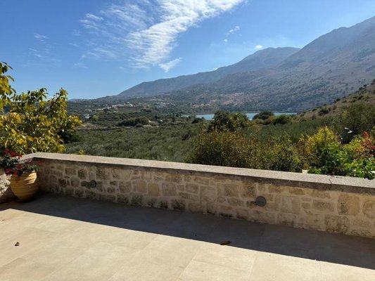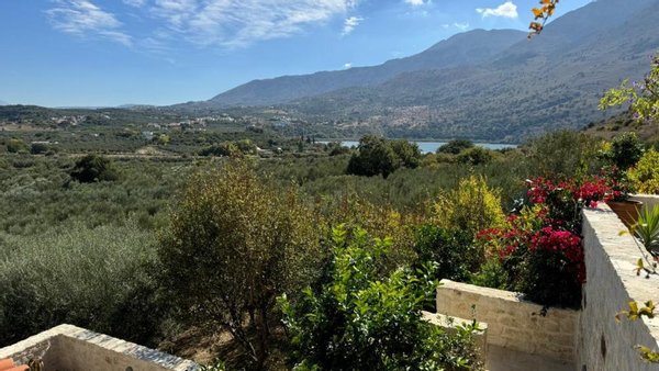 Kreta, Kournas: Malerisches Steinhaus mit bezauberndem See- und Meerblick zu verkaufen