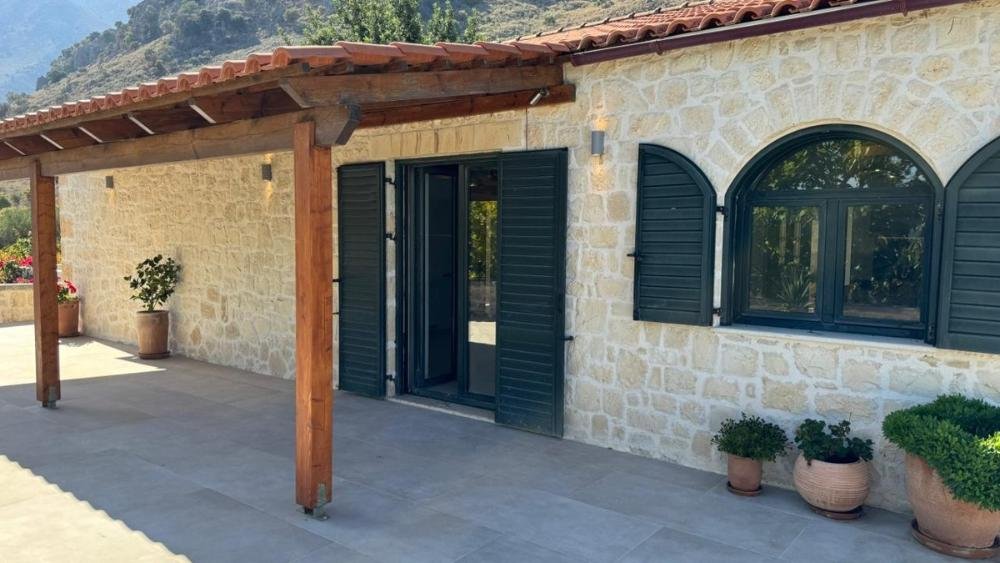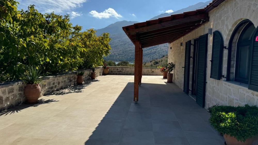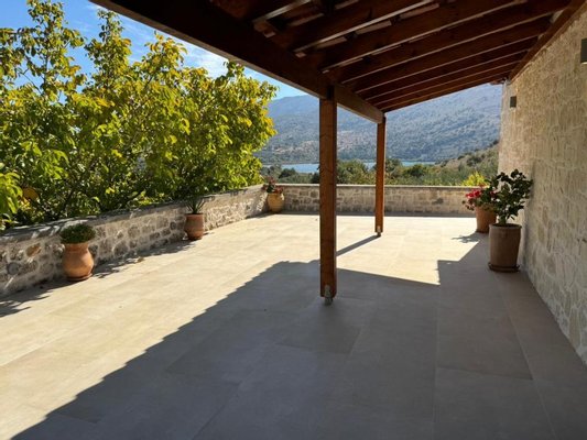 Dieses zum Verkauf stehende Steinhaus befindet sich in Kournas, Apokoronas, Chania. Es liegt in ruhiger, grüner Umgebung und wurde kürzlich renoviert. Das Anwesen bietet einen herrlichen Blick auf das Meer, die Berge und den nahegelegenen Kournas-See.