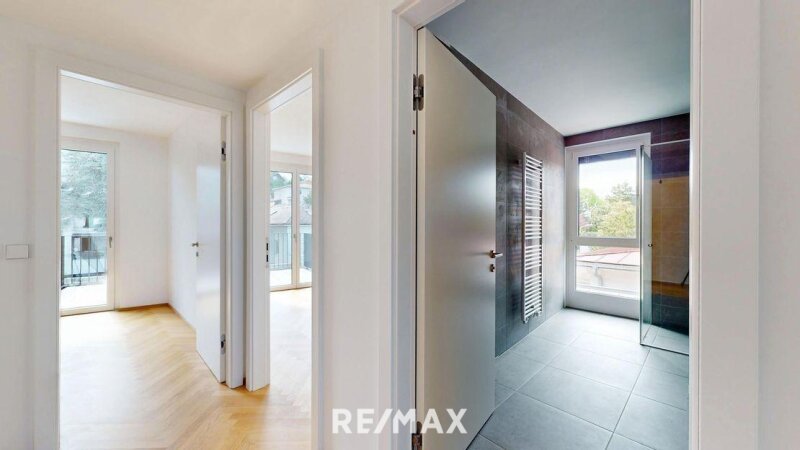 Die Ausstattung offeriert einen perfekten Mix aus exklusivem Design und hochwertigen Materialien. Feinste Parkettböden erzeugen gemeinsam mit den großzügigen Fensterfronten ein besonderes Ambiente in den offen gestalteten Wohnräumen. Optimale Lichtstimmungen versprechen die außenliegenden Jalousien, welche individuell gesteuert werden können. Dank des energieeffizienten Luft-Wärmepumpensystems